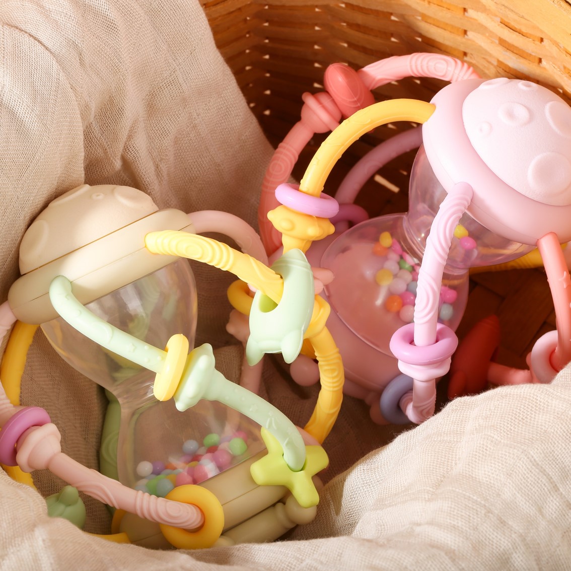惑星やロケットなどが散りばめられた宇宙をイメージしたラトル
