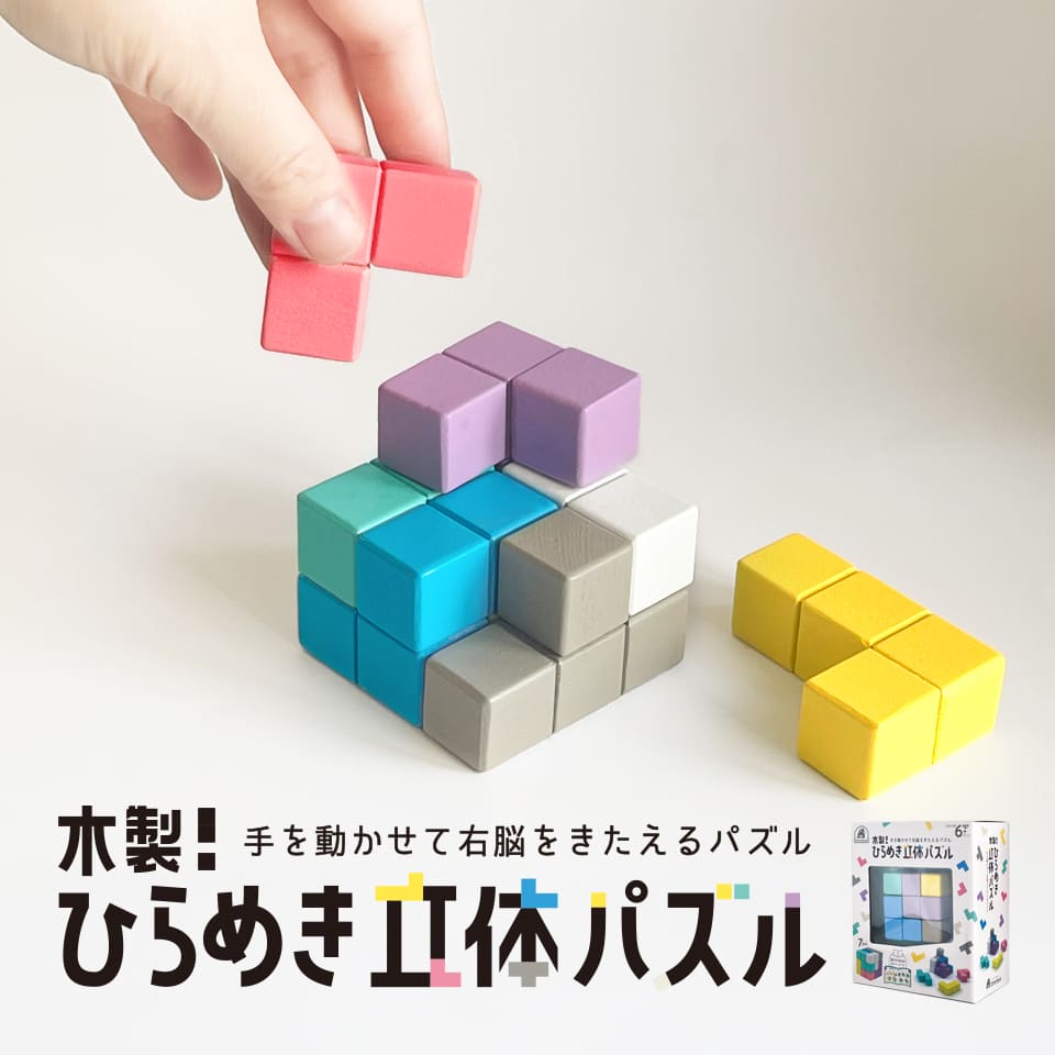 ●カラフルな7つの異なる立体のピースを組み合わせて立方体を作ったり、色々な立体図形を作って楽しむパズルです