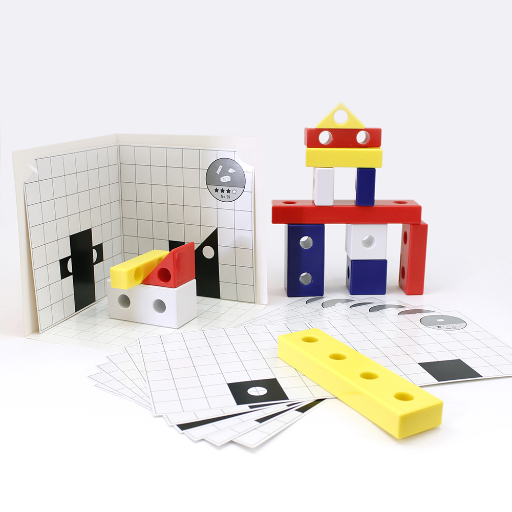 ●特徴的な穴のあいたつみきは全部で7種類、3Dパズルを遊ぶ際に最適な高さや奥行きに設計されています。