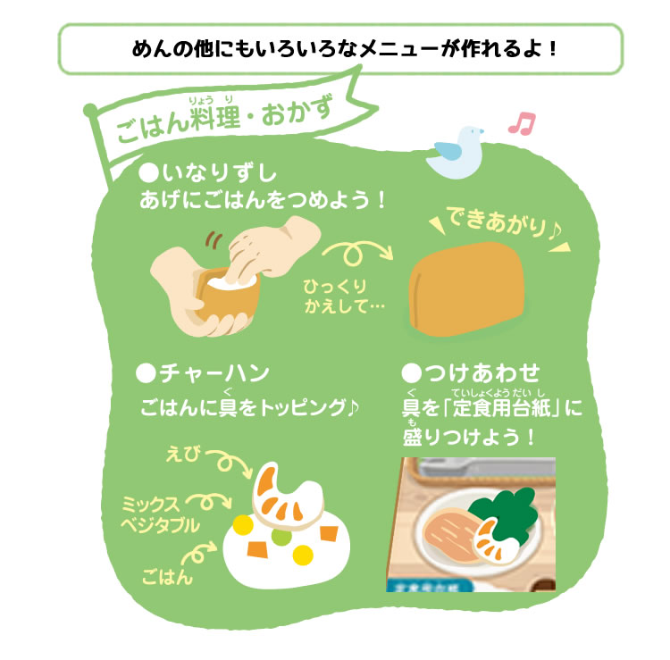 ●めんの種類と具材がたくさんあるのでいろいろな遊びが楽しめます。