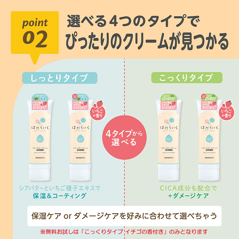 保湿・コーティング効果のあるベビースキンクリームは、1年を通して汗っかきな赤ちゃんにおすすめです。