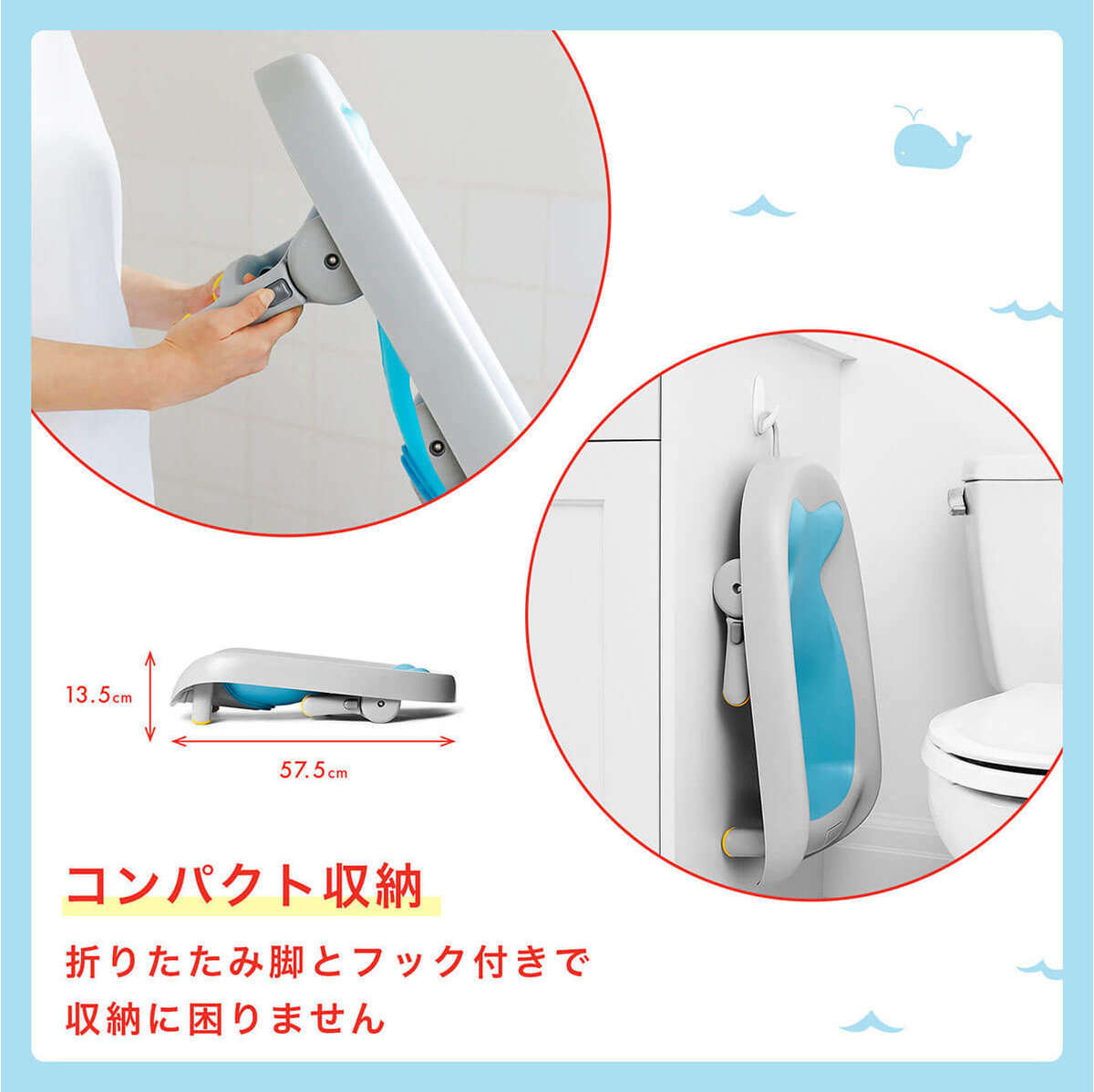 ●赤ちゃんとのお風呂の協力サポーター、赤ちゃんとパパママのことを考えた3つの機能