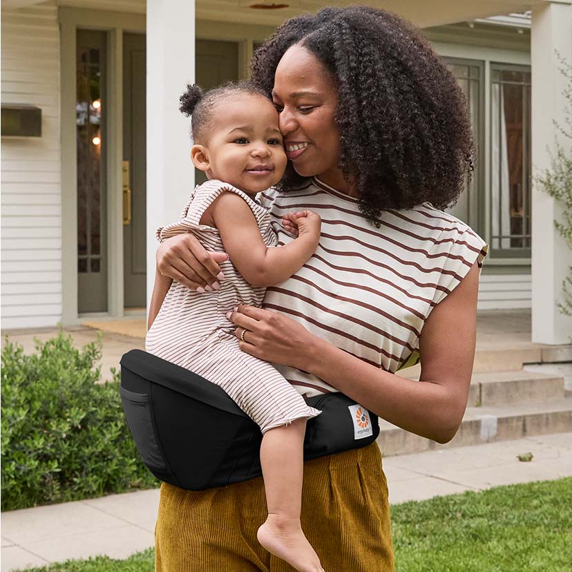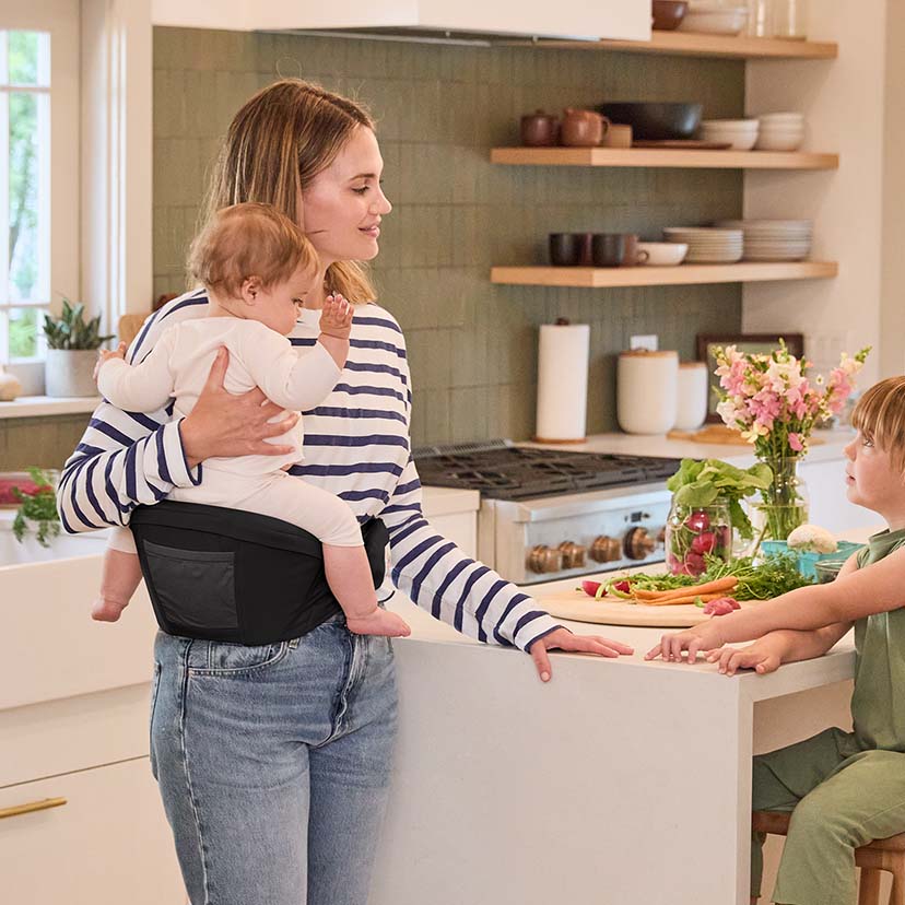 乗せ降ろしが増えても、ヒップシートで手軽に抱っこ。
