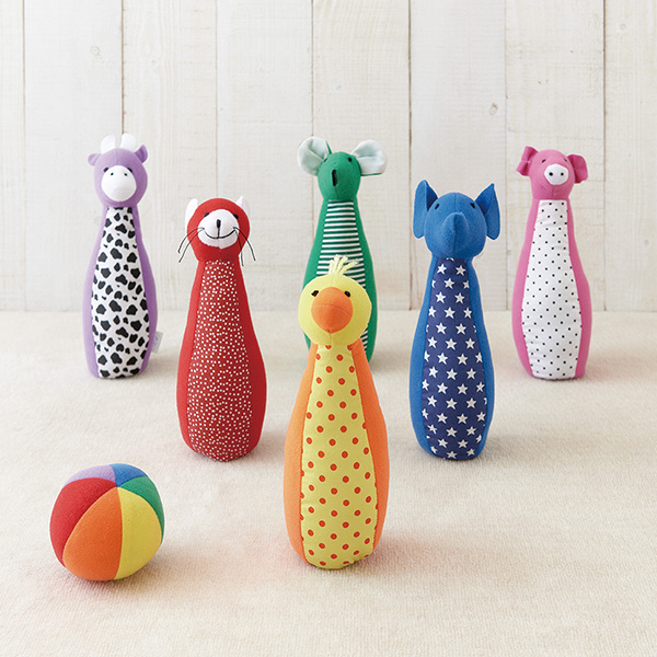 ボールを転がして動物のピンを倒していく布のおもちゃ